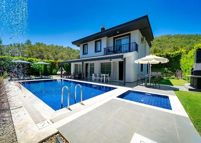 A Aysima Goecek-- Peaceful Holiday Villa Near The Sea In Gocek Fethiye, localizada a uma distância aproximada de 25 minutos a pé de 12 Islands, convida os hóspedes a relaxar com banheira quente.
